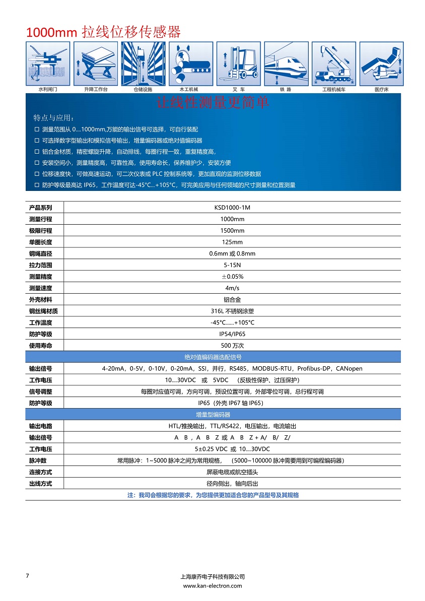 1000行程拉線位移傳感器