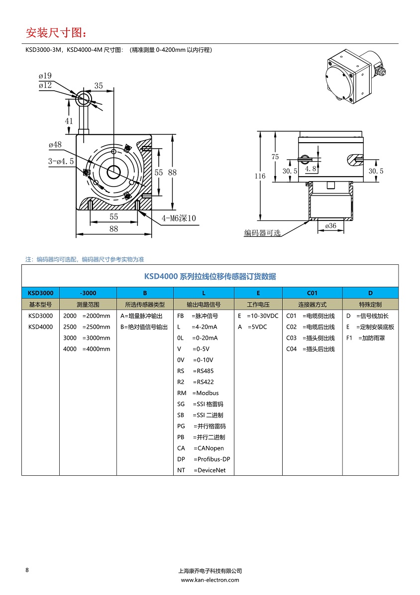 4000行程拉線位移傳感器