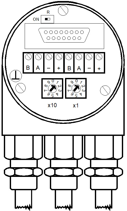 Profibus-DP裝置地址設置由連接帽中用戶界面友好的旋轉開關完成。 允許地址在1至99之間, 僅允許使用一次。 安裝時卸下兩個螺帽即可打開連接帽。 |